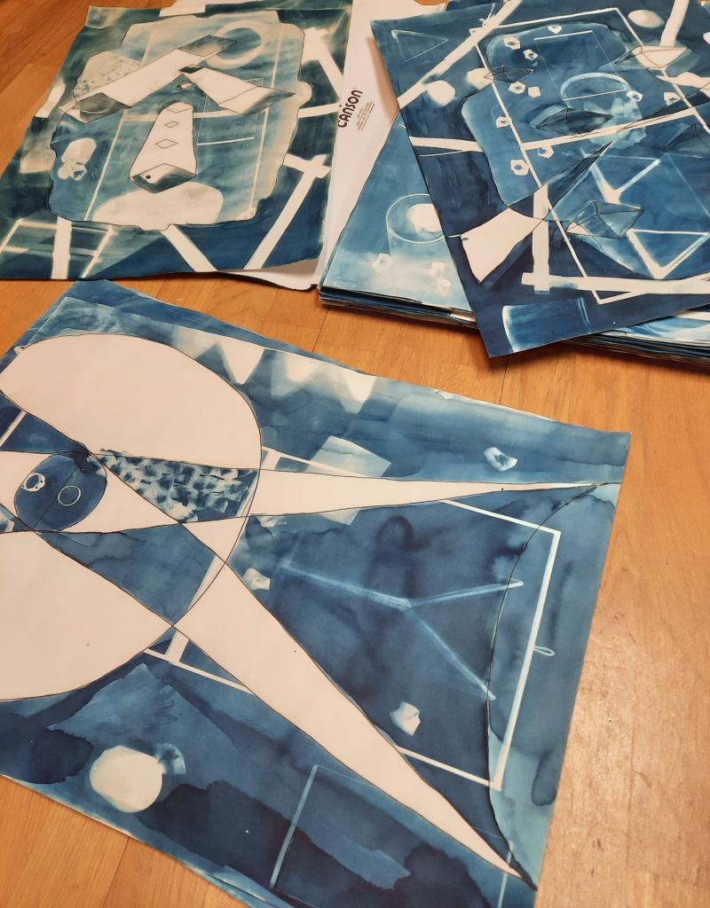 Diana Agunbiade-Kolawole and Johan Franzén, Of Blue, ink drawing and cyanotype on paper, photo: Alice Máselníková