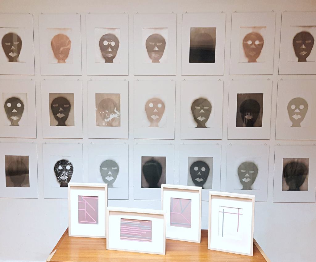 Diana Agunbiade-Kolawole, A Body of Work and A Body of Work – Masks, coloured photo paper; black and white photo paper, 2020–2021, photo: Alice Máselníková