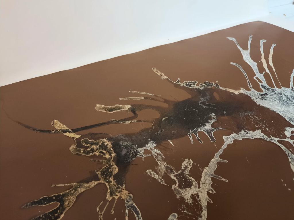 Less process-based, more introspective, and spiritual works are demonstrated in the ‘A Body of Work’, small playful collages that are contrasted with ‘A Body of Work – Masks’, a series of twenty-four masks developed with a phone light in the artist’s bathroom. It was interesting to compare those with Diana’s other works, like a juxtaposition of clashing character traits, of things we prefer to keep to ourselves or reveal to others.