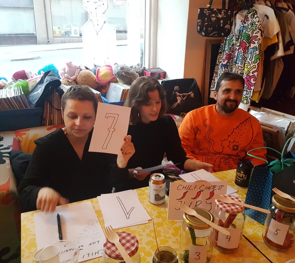 We have a selection of chilli peppers to try out how heat-proof you are. Yes, there is a prize for the winner ( = the survivor).