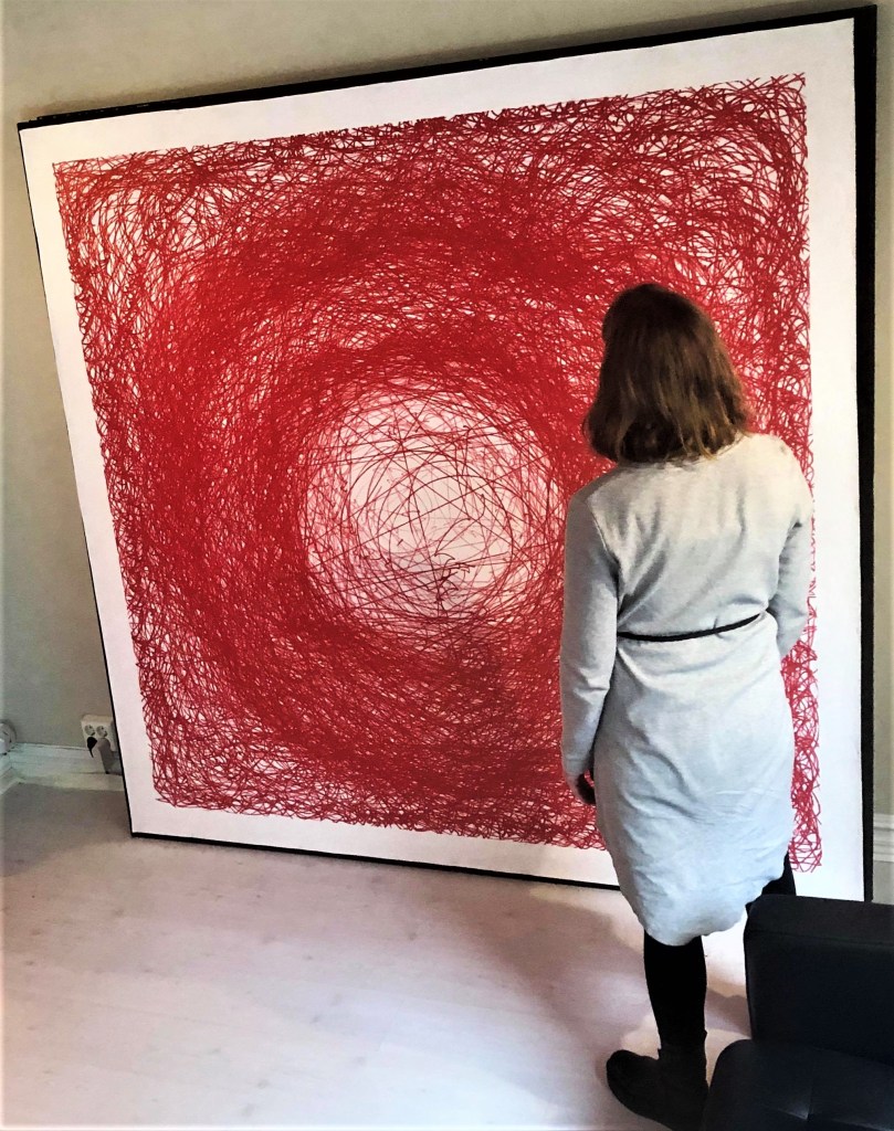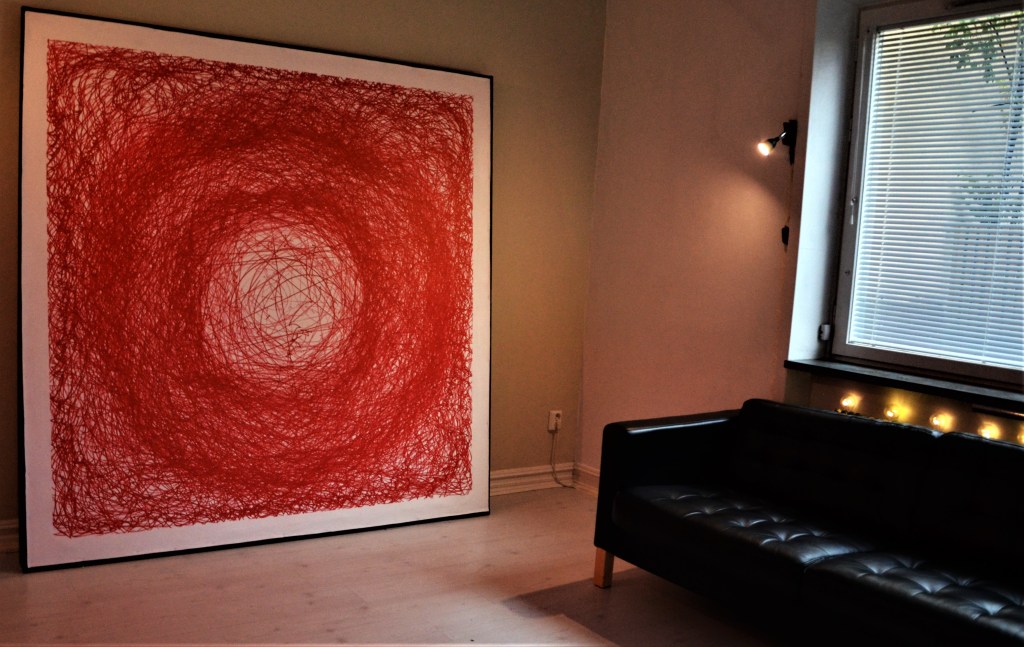 A central theme in Gabriella’s previous work is violence and body as a social construct. She has worked with video, photo, performance and readymades where she used her own body and various objects linked to or signifying violence, in order to illuminate its constructions. Recently, Gabriella has been focusing on painting, which also incorporates performance alongside other experimental working methods. During the creation process, the artist’s body can be partially replaced by robots and machines, or ‘artificial bodies’ as she calls them.