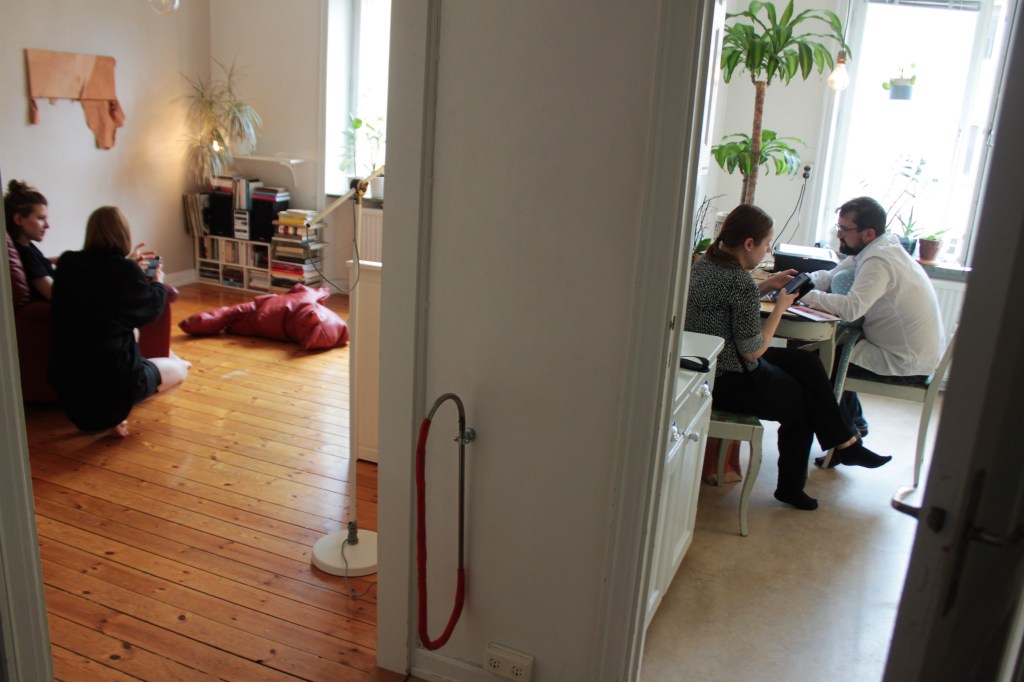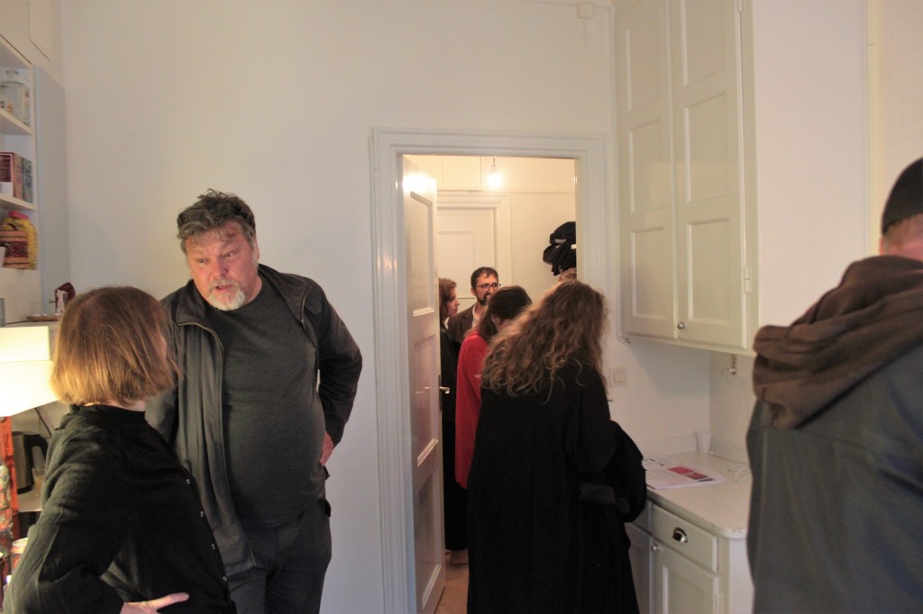 Interpersonal Sphere is a special exhibition for both Louise Sparre and me. When we started to plan it several months back, it felt like a daunting challenge. It is the first exhibition organised by Flat Octopus, and therefore one that sets to find our collective ways of working and collaborating. The close contact that is demanded between the artist and the curator is something quite unique. For several days prior to the exhibition, the artist is invited to the curatorโs apartment โ which is later to become the exhibition venue โ to inhabit the space, and get a sense of its routines, motions and atmosphere. In such conditions, an intimate interpersonal communication between the two parties has a fundamental role in producing an exhibition that is conceivably strengthened by the closeness of the relationship and the space surrounding it.