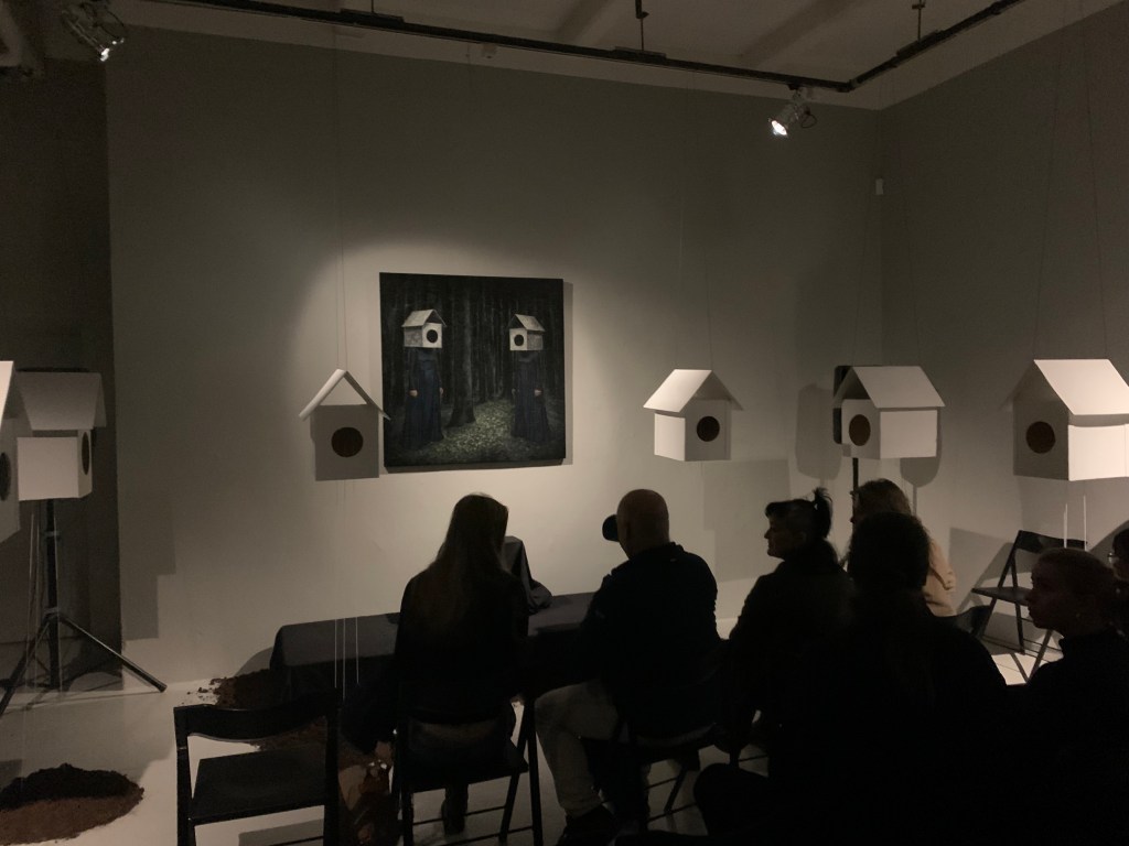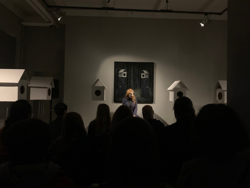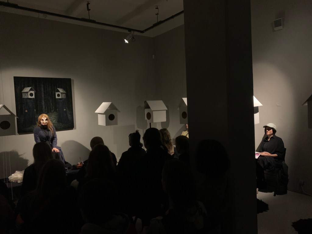 “Tales of the Owl Woman”, installation and performance by David Heikkinen, Ida Lod and Andrej Zverev as part of Flat Octopus programming at Färgfabriken Project Space. Photo: Amr Hamid