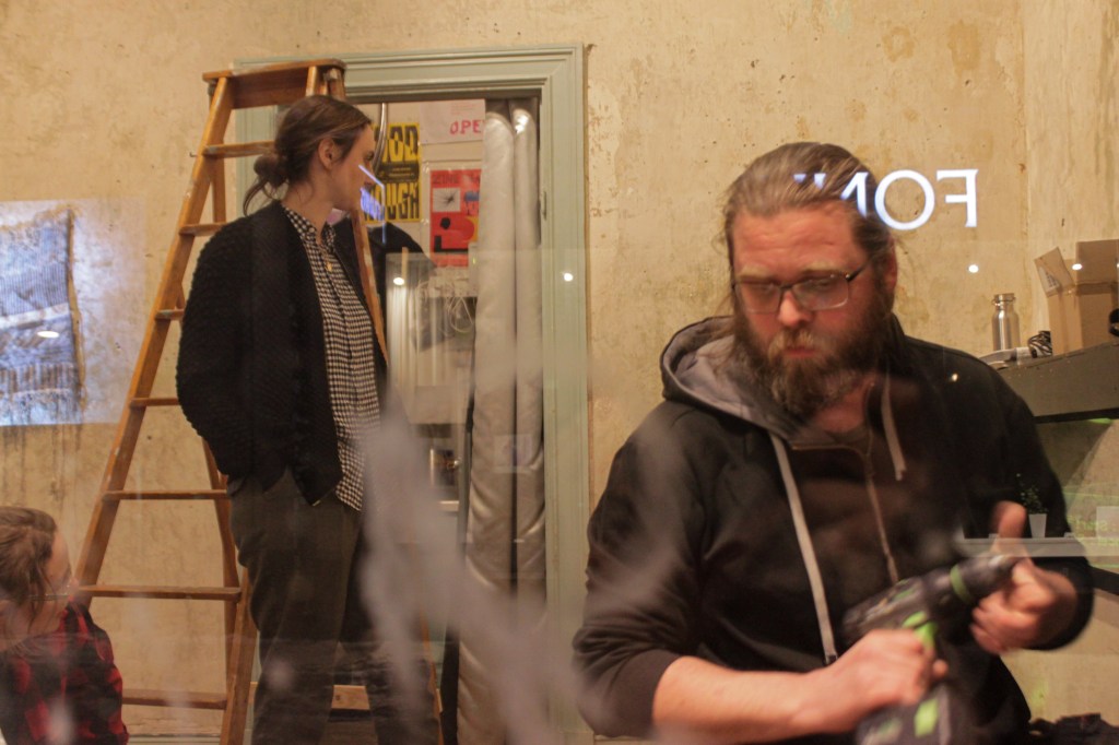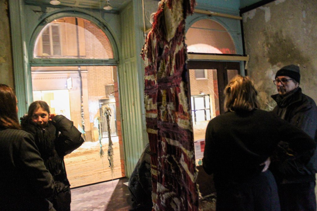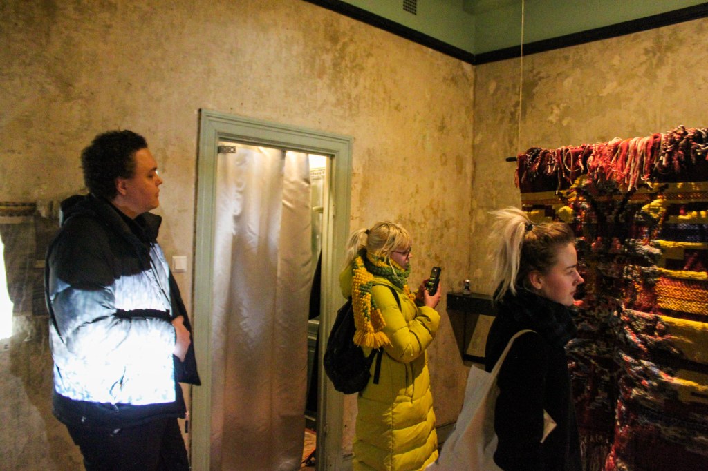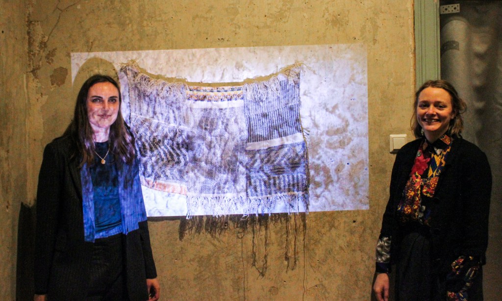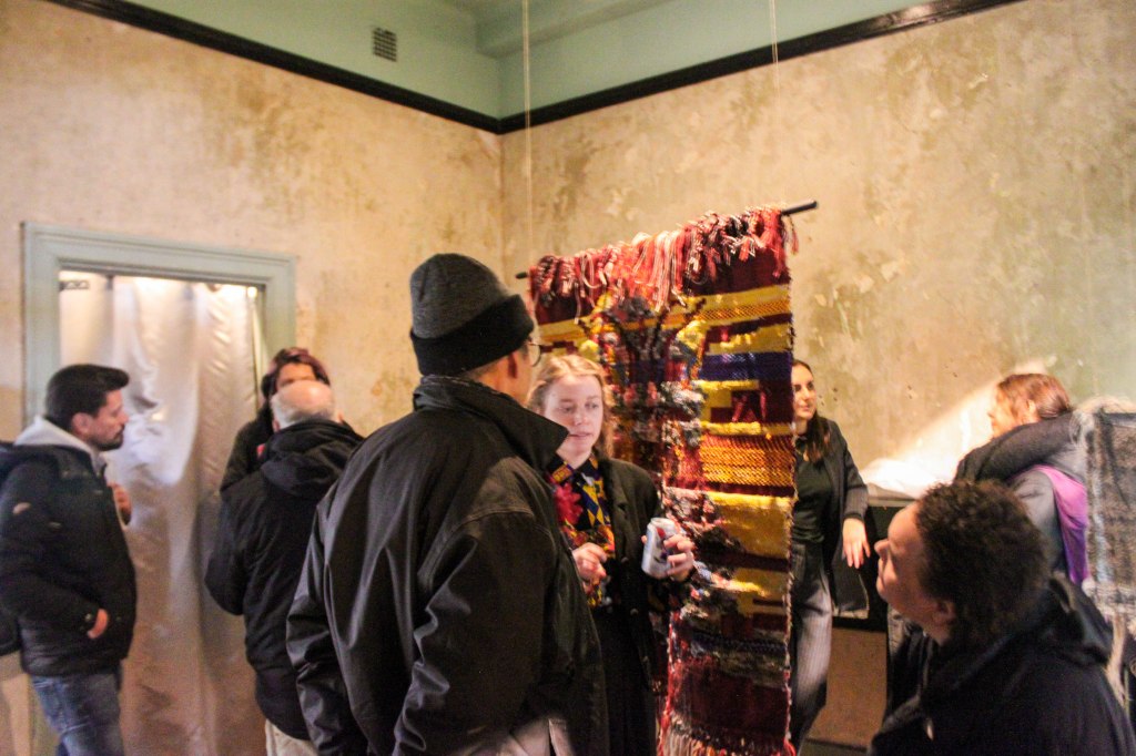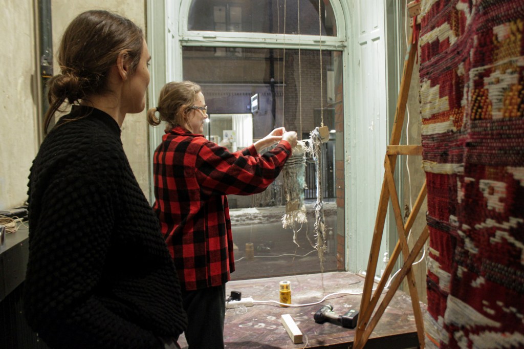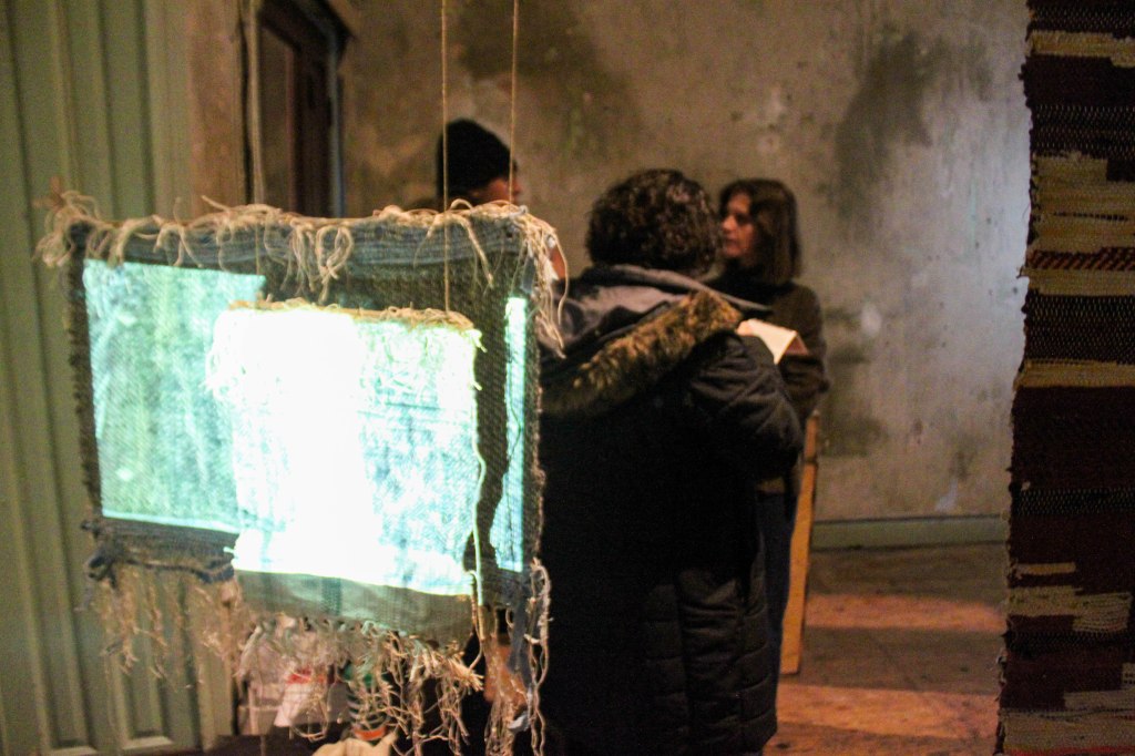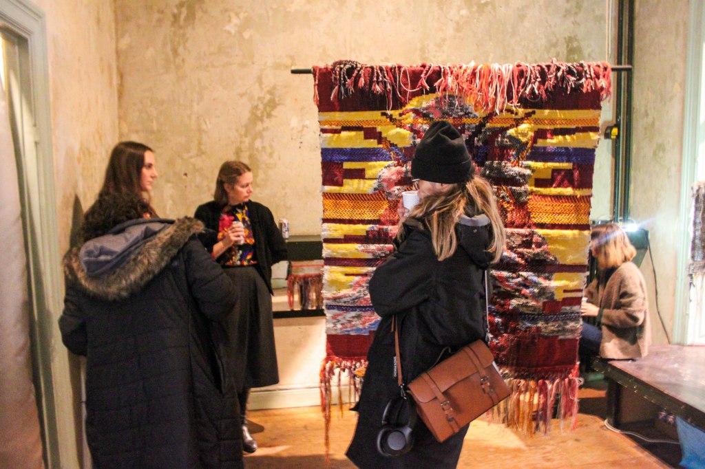 Nicola Godman and Josefin Gäfvert are Gotland-born artists. They studied together at a gymnasium in Visby, Gotland’s main city, and are currently both finishing their last year at Konstfack in Stockholm (in fine art and craft, respectively). The two artists started working together and developing the project Lammgiftet about a year ago, looking at the traditions and identity connected to their birthplace. I am always very fond of coming across artists who do not only set off to work together or present their work jointly, but who actually deeply complement each other and commit to a project to their utmost. The two artists’ practices seamlessly overlap in their disparate mediums – the striking hand-made weaves created from raw Gotland wool on a drawloom by Josefin Gäfvert, and Nicola Godman’s alluring and reflective video installations that are rooted in her farming background. The contrast of the raw and the smooth, the traditional and the modern in the artworks is further highlighted by the rawness of the exhibition space. The process of creating the works has been a journey and a collaboration, from researching and documenting the lambgift in-situ, collecting the raw wool to producing the pieces and reinventing them for a new space.