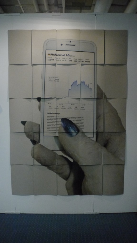 The performance combines songs from the Middle Ages and the singing of the working class. It works with beats of working and the power of collective singing, nearly being a hypnotic act. The performance is a song in Danish by the Alter Ego created to navigate the current state of brutality in the war zones in economics and desires linked in a capitalistic society.