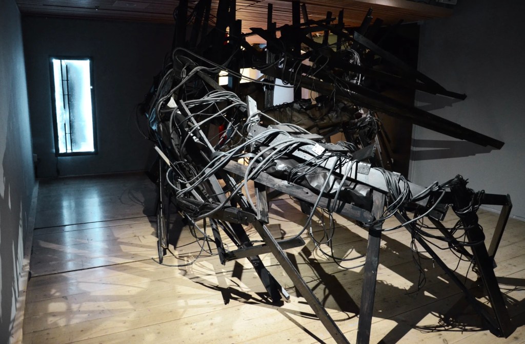 Kovacikova’s work particularly investigates underground and protective-like spaces, where the body’s relationship to environments with physical constraints is central. Her work often takes the form of large-scale site-specific installations using unconventional materials, where she combines blackness with large scale, and two-dimensionality with spatiality.